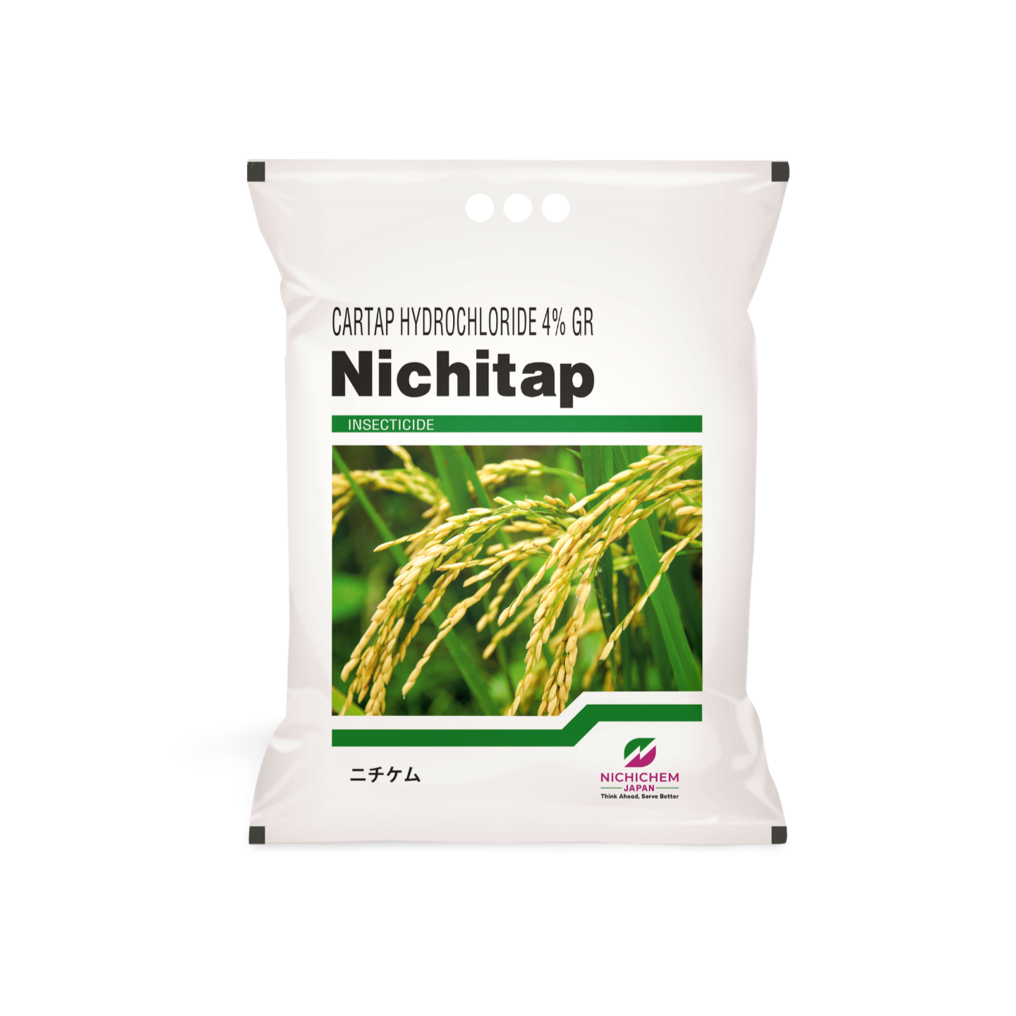 NICHITAP – Cartap Hydrochloride 4% GR is an effective granular insecticide formulated for soil application. It provides powerful control of a wide range of sucking and chewing insect pests in paddy and other crops. The granule formulation ensures easy application and uniform distribution in the soil, targeting pests such as stem borers, leaf folders, and caterpillars at the root zone. NICHITAP promotes healthy crop establishment by preventing early-stage pest damage and supports higher yields.